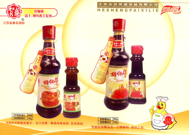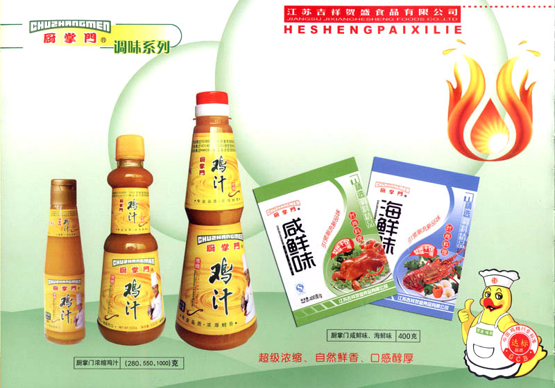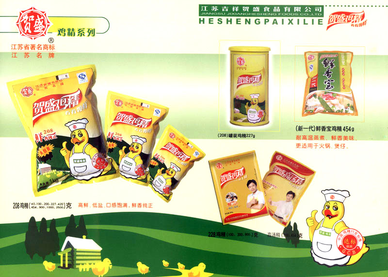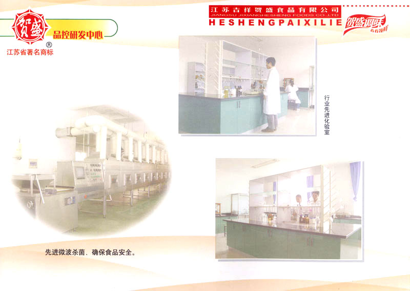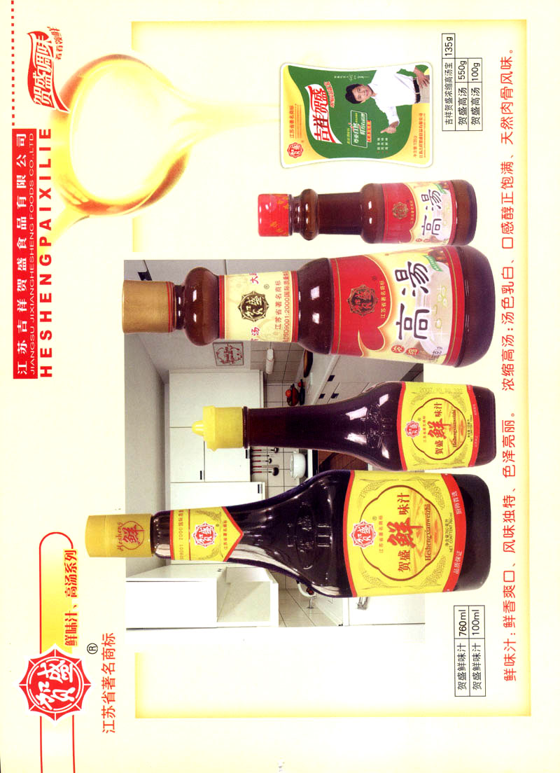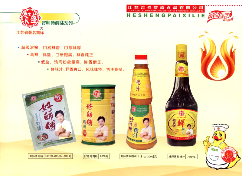 江蘇吉祥賀盛食品有限公司是一家中國(guó)專(zhuān)業(yè)餐料知名制造商,公司座落在經(jīng)濟(jì)高度發(fā)達(dá)“長(zhǎng)三角”的常州市,緊靠312國(guó)道,滬寧高速與沿江高速交匯處,距常州火車(chē)站及長(zhǎng)江水運(yùn)碼頭20千米,交通十分便利。公司占地面積23500平方米,花園式工廠、廠房面積18500平方米,現(xiàn)在員工330余名,其中擁有中、高級(jí)職稱(chēng)管理和技術(shù)人員58名,生產(chǎn)場(chǎng)地均按食品和藥品GMP要求設(shè)計(jì)、全封閉車(chē)間、中央空調(diào)系統(tǒng)、閉路電視監(jiān)控系統(tǒng)。目前已建成成三條雞精,雞粉生產(chǎn)線。一條雞汁生產(chǎn)線。一條鮮味汁生產(chǎn)線。一條醬汁精膏類(lèi)生產(chǎn)線,規(guī)劃年生產(chǎn)能力達(dá)30000噸。 “賀盛”品牌取自《詩(shī)·大雅·下武》中“受天之祜、 四方來(lái)賀”;《易經(jīng)》中“富有謂之大業(yè),日新之謂盛德”,賀盛企業(yè)師法源遠(yuǎn)流長(zhǎng)中華飲食文化,融匯中西健康美食調(diào)味。相繼研發(fā)生產(chǎn)出高品質(zhì)的“賀盛牌”味精、雞精、雞粉、雞汁、湯王、鮑魚(yú)醬王、鮮味汁調(diào)味素和各種風(fēng)味熱反應(yīng)精膏等系列產(chǎn)品。二十年來(lái)“賀盛”產(chǎn)品質(zhì)量獲得廚藝界專(zhuān)業(yè)人士和消費(fèi)者的一致好評(píng)和高度認(rèn)可。 賀盛企業(yè)和產(chǎn)品相繼榮獲1995年“首界中國(guó)國(guó)際食品博覽會(huì)金獎(jiǎng)”,2001年企業(yè)通過(guò)ISO-9001國(guó)際質(zhì)量體系認(rèn)證,2003年江蘇省“計(jì)量保證確認(rèn)單位”,2004年獲得自營(yíng)出口權(quán),2005年賀盛雞精榮獲“江蘇名牌產(chǎn)品”,2006年賀盛商標(biāo)被評(píng)為“江蘇省著名商標(biāo)”,2007年通過(guò)HACCP認(rèn)證,全部產(chǎn)品均通過(guò)QS食品安全認(rèn)證,并積極努力爭(zhēng)創(chuàng)中國(guó)名牌,中國(guó)馳名商標(biāo)。 公司銷(xiāo)售網(wǎng)點(diǎn)建設(shè)發(fā)展迅速,相繼組建上海、南京、河南、海南、新疆全資分公司;辦事處、經(jīng)銷(xiāo)商覆蓋全國(guó),并出口日本、香港及東南亞地區(qū)。二十年來(lái),在公司總裁周?chē)?guó)林先生帶領(lǐng)下,全體同仁秉承“厚德載物、自強(qiáng)不息”宗旨,發(fā)揚(yáng)“以人為本、科技創(chuàng)新、自我加壓、爭(zhēng)創(chuàng)一流”的企求精神;致力于傳承中華飲食文化,融化西方美食精粹,不斷的研發(fā)、創(chuàng)新,奉獻(xiàn)更多更好的調(diào)味料,讓生活更有滋味。公司總裁周?chē)?guó)林先生攜全體員工熱誠(chéng)歡迎各位新老朋友蒞臨指導(dǎo),洽談合作!