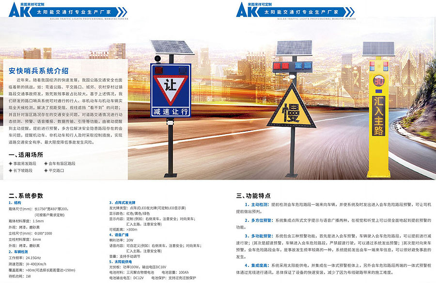 常州安快交通設(shè)施有限公司成立于2018年,位于江蘇省常州市鄒區(qū)鎮(zhèn)。是一家專業(yè)生產(chǎn)銷售交通信號(hào)電子產(chǎn)品廠家。主要產(chǎn)品有:太陽(yáng)能爆閃燈、回轉(zhuǎn)燈、雷達(dá)測(cè)試儀、黃慢燈警示燈、假警車、保通機(jī)器人、移動(dòng)紅綠燈、道路智能化預(yù)警系統(tǒng)的廠家。本公司真誠(chéng)的希望與客戶在臺(tái)作中加深了解、促進(jìn)友誼并期待與其建立長(zhǎng)遠(yuǎn)良好平等互利的臺(tái)作伙伴關(guān)系。我們竭誠(chéng)歡迎各界朋友來(lái)公司蒞臨指導(dǎo)、洽談業(yè)務(wù)井提出寶貴意見。