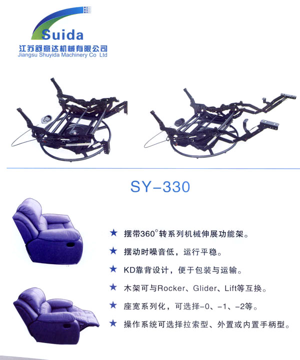 江蘇舒意達機械有限公司是一家集研發(fā)設計,生產(chǎn)制造及銷售的專業(yè)家具五金企業(yè)。公司成立于2006年,座落于風景秀麗的江南常州,交通運輸?shù)锰飒毢,為海?nèi)外客商的來往交流,洽談和供貨提供了諸多便利,公司占地面積28000平方米,生產(chǎn)廠房面積18000平方米,獨立的辦公樓,擁有良好的工作環(huán)境。 我們的經(jīng)營思理念:堅持以人為本,科技為先,用先進的設備,好的工藝流程制造一流的產(chǎn)品。 我們的口號:保證以優(yōu)秀的品質(zhì)服務于客人,我們的目標:研發(fā)更多舒適的產(chǎn)品,帶來生活的享受。 公司誠邀海內(nèi)外客商前來指導洽談,攜手共進,共造雙贏。