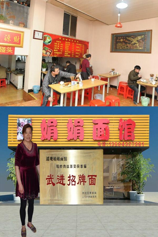 遙觀娟娟面館:青菜香菇雞蛋面 2016年歲末年初,武進區(qū)商務局、武進烹飪協(xié)會、《武進日報》等單位,在全區(qū)范圍內(nèi)開展“武進招牌面”評選活動,最終,遙觀娟娟面館被評定為“武進招牌面”第一名。 2008年,馬玉娟所在的企業(yè)面臨倒閉,她開始謀求自己的創(chuàng)業(yè)之路。第一個想法就是開一家面館,因為妹妹馬小娟喜歡燒菜,親戚朋友吃了她燒的菜,無不嘖嘖稱贊。姐妹倆一合作,店名自然叫“娟娟面館”。 開面館,一面裝修,一面領(lǐng)“衛(wèi)生許可證”、“工商營業(yè)執(zhí)照”;再就是外出求藝學燒菜。姐妹倆兵分兩路:玉娟去學小炒,小娟去學大葷澆頭,不久便開張營業(yè)了。 行家吃面先品湯。娟娟面館的白湯是最樸實的燒法,它用大肉、排骨熬制4個小時,湯色清亮,香氣撲鼻。至于拌面湯,全部都是紅燒肉汁,加上香蔥、雞精等十多種調(diào)料,自然是色香味俱佳。 娟娟面館點單率最高的是青菜香菇雞蛋面,一菜一菇一蛋一湯,樸實無華,價廉物美,老少皆宜,久吃不厭,非常適宜我國人口的營養(yǎng)膳食結(jié)構(gòu)。其中小青菜是當?shù)剞r(nóng)家的家常菜;雞蛋是當?shù)毓麍@散養(yǎng)的母雞所生,味道自然地道純正了。 娟娟面館自開張以來,幾乎天天顧客盈門,高峰時要在門外等候。如今姐姐的兒子和妹妹的女兒都已上陣傳承,并在湖塘鎮(zhèn)馬杭紡織城附近新開了一家連鎖面館,每天要賣出300-500碗各式面點。
