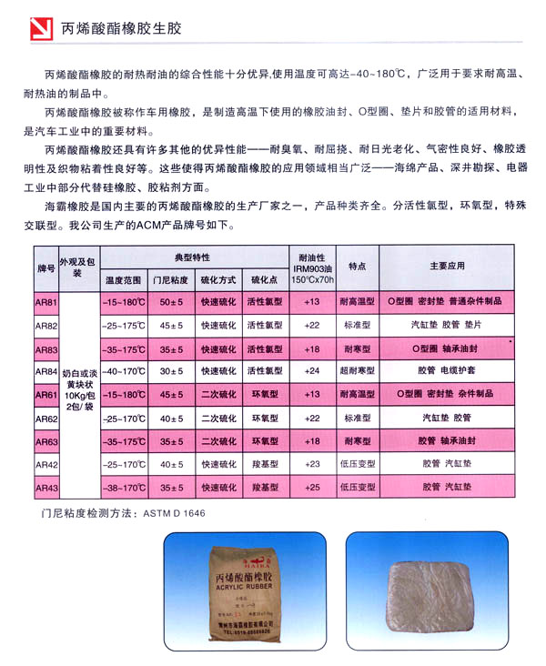 常州海霸橡膠有限公司成立于2005年,位于常州與江陰接壤處的武進(jìn)區(qū)橫山橋鎮(zhèn),西距常州18公里。北距江阻20公里,滬寧高速公公司占地面積30865平方米,其中建筑面積9800平方米,廠區(qū)環(huán)境優(yōu)雅,有山有水,綠化率達(dá)到1 00%,是一座名符其實(shí)的江南花園式工廠。 公司堅(jiān)持“信譽(yù)打天下,質(zhì)量占市場(chǎng)”的企業(yè)運(yùn)營(yíng)理念,建立,健全現(xiàn)代企業(yè)管理制度,珍視用戶(hù),用“心”為國(guó)內(nèi)外客商服務(wù)。全方位整合多種資源,使企業(yè)步入快速發(fā)展的軌道,打造出一流的化工企業(yè)。 公司生產(chǎn)的聚丙烯酸酯系列橡膠,以及丙烯酸酯橡膠混煉膠、乙烯丙烯酸酯橡膠混煉膠、氟橡膠膠混煉膠、氟硅橡膠混煉膠、氫化丁腈混煉膠等。質(zhì)優(yōu)物美,深得國(guó)內(nèi)外客商的青睞。 展望未來(lái)。海霸人將繼續(xù)以?shī)^斗不息的精神和百倍信心與廣大客戶(hù)一起共創(chuàng)美好明天。