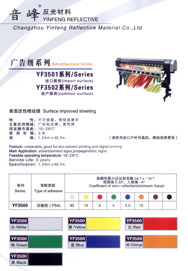 音峰集團是一個多種經(jīng)營的綜合性高科技股份公司,從事反光材料、交通安全設(shè)施、絲網(wǎng)印刷、揚聲器、紡織等產(chǎn)品的研制開發(fā)、生產(chǎn)銷售。公司自創(chuàng)立以來,堅持走科技發(fā)展的道路,以滿足客戶需求為公司宗旨,取得了令人矚目的經(jīng)濟效益和社會效益,使公司規(guī)模不斷擴大。 音峰反光材料有限公司是音峰集團下的一個新銳的子公司,主要從事系列反光材料及發(fā)光膜的研制和開發(fā)。公司擁有國內(nèi)最先進的生活殘設(shè)備,最專業(yè)的研制、開發(fā)人員,公司還投入了大量的資金,年產(chǎn)值達1.5億。 公司主生產(chǎn):廣告級反光膜、工程級反光膜、車牌級反光膜、高強級反光膜、廣告級反光雙色條、發(fā)光膜、噴繪反光膜、晶彩格、電信電力反光膜,鍍鋁膜等等..........根據(jù)國家指令法規(guī):反光材料的領(lǐng)域,如公路標(biāo)志、標(biāo)牌、標(biāo)線、礦山、鐵路等......... 反光膜廣泛應(yīng)用于各種廣告標(biāo)志牌,公路鐵路的導(dǎo)向牌、指示牌、地名牌、車牌,道路交通標(biāo)志,物業(yè)小區(qū)標(biāo)志,臨時施工標(biāo)志,廣告宣傳、安全防護、高等級公路的各種警示標(biāo)語,標(biāo)識牌等。 公司堅持以生產(chǎn)力標(biāo)準(zhǔn)衡量企業(yè)效益和員工業(yè)績,堅持“以人為本,提倡知人、容人、用人、培養(yǎng)人,使企業(yè)具有極強的凝聚力,在激勵的市場競爭中保持旺盛的生命力!笨萍急WC品質(zhì),服務(wù)完善產(chǎn)品“是我們永遠不變的信念。 隨著世界的發(fā)展,企業(yè)經(jīng)營進入了全球化時代,本著這一共識,企業(yè)憑借自身的技術(shù)優(yōu)勢,積極參加國際間合作與競爭,努力拓展國內(nèi)與國際市場,公司愿與國內(nèi)外各界朋友在更廣泛的領(lǐng)域攜手合作,共同發(fā)展,共創(chuàng)繁榮。