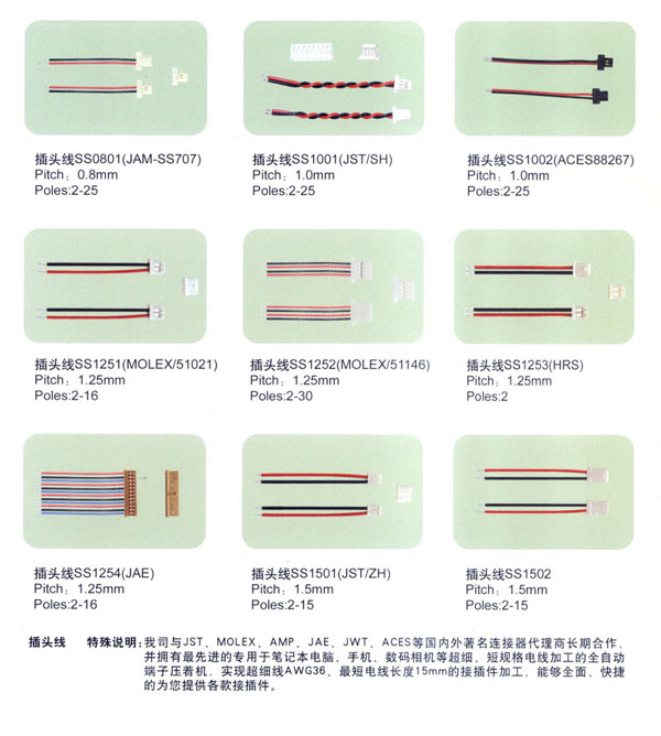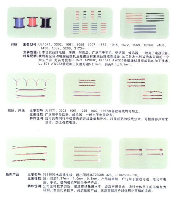 常州市匯創(chuàng)電子有限公司我公司2000年8月成立.端子連接線生產(chǎn)有10余年的經(jīng)驗.結(jié)合韓國連接線生產(chǎn)技術,致力于筆記本電腦,手機,數(shù)碼相機等高端行業(yè)的小間距的端子連接線的研究和生產(chǎn).小間距端子連接線的插頭的常規(guī)型號有 SH/1.0mm, 51021-0200/1.25mm, ZH , PH, EH, XH, SAN, SCN, 2510 等.特殊插頭型號有:02SUR-32S,02SSR-32H.材料用原廠進口的JST, MOLEX,或臺資廠家的(根據(jù)客戶需要).全環(huán)保,無鉛化生產(chǎn).2008年開始導入無鹵素要求。企業(yè)已經(jīng)通過ISO9001-2000質(zhì)量管理體系.質(zhì)量好!交貨快!價格合理!是目前常州AAC等多家大型受話器廠家的優(yōu)秀供應商.客戶遍及常州周邊,蘇州,昆山,上海,深圳,嘉興,山東,重慶等地.也有直接出口韓國,臺灣.現(xiàn)有高素質(zhì)員工100人左右.廠房面積2000平方米.