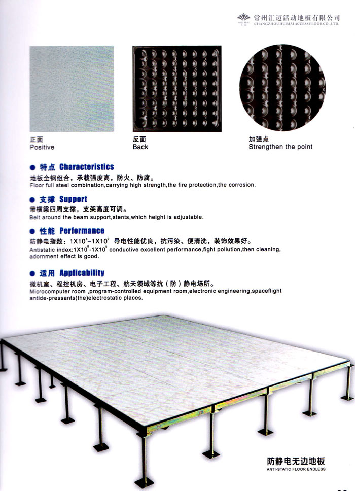 常州匯邁活動地板有限公司地處鄉(xiāng)鎮(zhèn)工業(yè)發(fā)達的江蘇省常州市。北靠滬寧高速公路、東臨上海、交通便利。多年來,公司以其硬朗的產品質量.良好的商業(yè)信譽,嚴格的企業(yè)管理,迅速發(fā)展成為國內生產全鋼活動地板的知名企業(yè)。 本公司致力于高新技術產品開發(fā)、生產、研究的綜合性企業(yè):主要生產和經營防靜電網(wǎng)絡地板系列.主要包括:陶瓷防靜電活動地板、無邊地板、硫酸鈣防靜電地板、OA網(wǎng)絡活動地板等。公司按照GB6650—86與IS09001 :2000系列質量標準化管理和標準化生產,以市場為導向.不斷對現(xiàn)有產品進行優(yōu)化、更新,對生產線進行技術改造,力求減低成本,提高效辜。努力在市場競爭中占據(jù)優(yōu)勢。本公司為中國信息產業(yè)部認證企業(yè).質量由國家信息產業(yè)部防靜電產品質量監(jiān)督檢測中心認可。 公司大力發(fā)展國內殛海外銷售業(yè)務,公司采用各種有效的營銷手段,向客戶展示了公司及產品的良好形象,多次中標國內重點裝飾工程 同時。公司積極融入全球經濟發(fā)展,積極拓展海外業(yè)務。 匯邁地板將一如既往,開發(fā)和制造一流的產品,吸引和培養(yǎng)一流的人才,擁有和完善一流的服務,建立和發(fā)展一流的形象,迎接新時代!