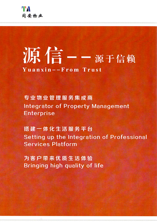 常州市同安物業(yè)管理有限公司注冊1999年,發(fā)展至今已有多年歷史,本公司坐落于美麗的龍城常州,秉承“融聚無限未來”的核心理念,融專業(yè)認才,匯優(yōu)質(zhì)資源以”專心,細心,耐心”的服務(wù)態(tài)度,為客戶打造“安心,順心,稱心”的服務(wù)感受。