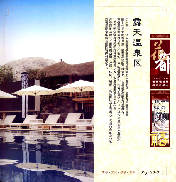 淹城花都溫泉水城孕育天地之精華,悅身、悅?cè)、悅心、悅神。置身其中泉水潺潺,霧氣繚繞、花瓣飄香,恍若仙境!稗渌略谑,弄花香滿衣”,花都溫泉的浪漫與溫潤在這里完美展現(xiàn)。 花都溫泉水城包括洗浴區(qū)、戲水世界、露天溫泉、自助餐廳、生態(tài)房、別墅區(qū)、紅文化房、VIP區(qū)等多種功能區(qū)域,是集溫泉養(yǎng)生、休閑住宿、演藝會務(wù)為—體的休閑度假勝地,給賓客帶來江南小鎮(zhèn)的浪漫水城之旅。 古木新枝畔賓客對酒當(dāng)歌,溪泉石椅旁把茶品啜。 淹城-三勤生態(tài)酒店,這里是一處綠色生態(tài)的美食家園。此地鬼斧神工.奇水異石,和風(fēng)細(xì)雨林中穿過,引百鳥朝來暮歌;這里集生態(tài)餐飲、演藝、中小型會務(wù)為一體,將現(xiàn)代裝飾風(fēng)格和古雅拙樸的自然裝修完美整合;這里聚集大江南北名廚,推出精致綠色美昧佳肴。來到這里,賓客可享田園至美之景,品舌尖至鮮之味,實(shí)乃人生一大樂事。