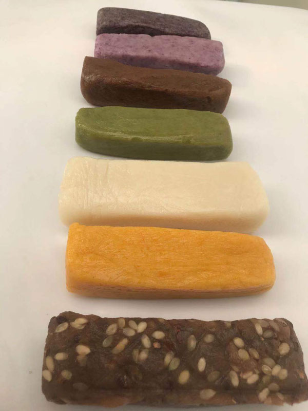 腳踏糕本名“年糕”,按常州周邊地區(qū)的風(fēng)俗習(xí)慣,在春季前夕,各家各戶都要蒸年糕,吃年糕!案狻敝C音“高”,過(guò)年吃年糕被賜予“年年高”,一年高一年,鋒吉祥之意,表達(dá)這人們對(duì)未來(lái)美好生活的憧憬和良好的祝愿。今天小編要帶大家的就是一家至今保持著傳統(tǒng)手工制作的鈺鋒糕點(diǎn)坊。 鈺鋒糕點(diǎn)坊位于常州鄭陸鎮(zhèn)三皇廟范家莊,一個(gè)比較偏僻的村莊,雖然這家作坊不大,但香糯絲滑,軟糯適中,韌勁十足的腳踏糕吸引了無(wú)數(shù)的食客。制作一條腳踏糕要從淘米,浸泡,碾粉,鋪粉,一層一層的鋪下去,需要無(wú)數(shù)道制作工序,這些都是店主孫煥公公老周,憑著幾十年的經(jīng)驗(yàn),加上店主孫煥從不馬虎的決心! 這“腳踏”也并非赤腳上陣,而是把蒸好的糕倒入早以準(zhǔn)備好的框子里,用布包裹好,上面再用薄膜包好,再蓋上布,再換上專門腳踏的布鞋,踩的時(shí)候要?jiǎng)蚍Q,左右腳要配合好,不然糕會(huì)高高低低,不平整,最后再拿蠟燭線拆成一條小長(zhǎng)條,再拿帶包裝好,如此又香又糯的腳踏糕就大功告成了。 店主孫煥為了讓更多的人認(rèn)識(shí)和了解常州腳踏糕的傳統(tǒng)文化和美食,她在傳統(tǒng)工藝中增加了適合現(xiàn)代文化的多種口味,她在糕里加入南瓜,紫薯,老紅糖,大麥汁,血糯米,核桃,葡萄干,紅棗等食材,做出五顏六色,純天然的口味,深受食客們的喜愛(ài),不管是送人還是自己吃都非常新穎。 (重陽(yáng)糕)重陽(yáng)糕的由來(lái),九九重陽(yáng),九是陽(yáng)數(shù),也是陽(yáng)數(shù)中最大的數(shù),九月初九,兩九相重,為之重陽(yáng),古人有重陽(yáng)登高的習(xí)俗。高于糕同意,寓意人活九十九,生活步步高,秋景勝春光,夕陽(yáng)無(wú)限好。夕陽(yáng)紅成了老人對(duì)自己美好的祝愿和希望,所以從某種意義上來(lái)講它“祝壽糕”“長(zhǎng)壽糕”重陽(yáng)糕在常州地區(qū)是家喻戶曉的,下面小編帶你去一家至今保持傳統(tǒng)手工制作的鈺鋒糕點(diǎn)坊看一下吧。鈺鋒糕點(diǎn)坊位于常州市天寧區(qū)鄭陸鎮(zhèn)三皇廟范家莊,偏僻的小村莊,雖然有點(diǎn)偏僻,但是每到重陽(yáng)節(jié)到來(lái),每天還是有很多食客來(lái)訂購(gòu)和購(gòu)買店主孫煥做的多種口味的重陽(yáng)糕。要想做出松軟香糯的重陽(yáng)糕,原材料和糯米和梗米的配比也很重要,調(diào)整好比例開(kāi)始淘米,浸泡,釓粉,放入糖攪拌,篩粉,糕底部放上荷葉,中間的餡心都是孫煥自己熬制,口感,香糯松軟,店主孫煥為了吸引更多現(xiàn)代年輕人,她在粉里加入南瓜,紫薯,紅糖,血糯等,色彩搭配很出跳,吸引來(lái)了很多食客,孫煥2019年開(kāi)始自愿捐贈(zèng)重陽(yáng)糕給敬老院,她說(shuō)這樣的公益活動(dòng)自己很喜歡,雖然金額不大,缺表達(dá)了她的一份心意,并稱這樣的公益活動(dòng)她每年都會(huì)做。