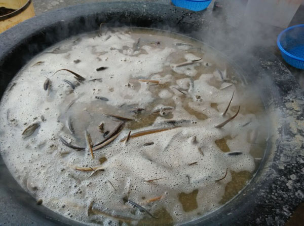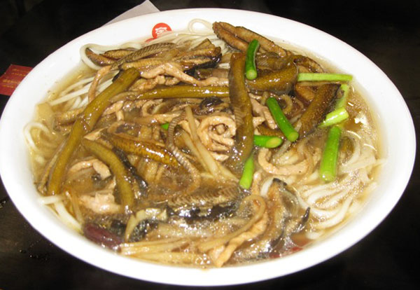 常州新北區(qū)孟河公陽小吃店從事鱔絲面23年,經(jīng)營面積100平方米,黃鱔全是野生,面湯采用高湯制作(鱔魚湯),下面的時候先用開水把黃鱔燙熟,然后用竹刀批下二條黃鱔肉,除去骨頭肚腸,切成段后入油鍋里炸酥,再用白湯烹制成為面澆頭。而面湯是用鱔魚骨頭、豬骨等用大鍋猛火煮上三、四個鐘頭,成為一鍋濃濃的白湯,再進(jìn)行調(diào)味,吃到嘴里全身舒坦。
