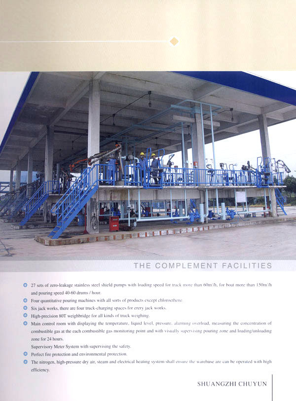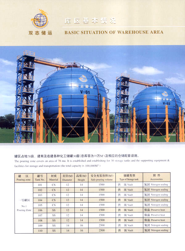 常州市雙志石油化工儲(chǔ)運(yùn)有限公司,位于國(guó)家一類對(duì)外開放口岸常州石化港區(qū),是一家專業(yè)石油化工產(chǎn)品倉(cāng)儲(chǔ)公司。罐區(qū)占地78畝,建有各種化工儲(chǔ)罐30座(總庫(kù)容為10萬(wàn)m3)及相應(yīng)的倉(cāng)儲(chǔ)配套設(shè)施。經(jīng)海關(guān)批準(zhǔn),設(shè)有海關(guān)保稅庫(kù)和海關(guān)監(jiān)管庫(kù)。公司專業(yè)從事石油化工產(chǎn)品倉(cāng)儲(chǔ)、中轉(zhuǎn)、分撥、灌裝業(yè)務(wù),以及進(jìn)出口貨物的代理報(bào)關(guān)、接受金融機(jī)構(gòu)委托提供動(dòng)產(chǎn)質(zhì)押監(jiān)管服務(wù)。