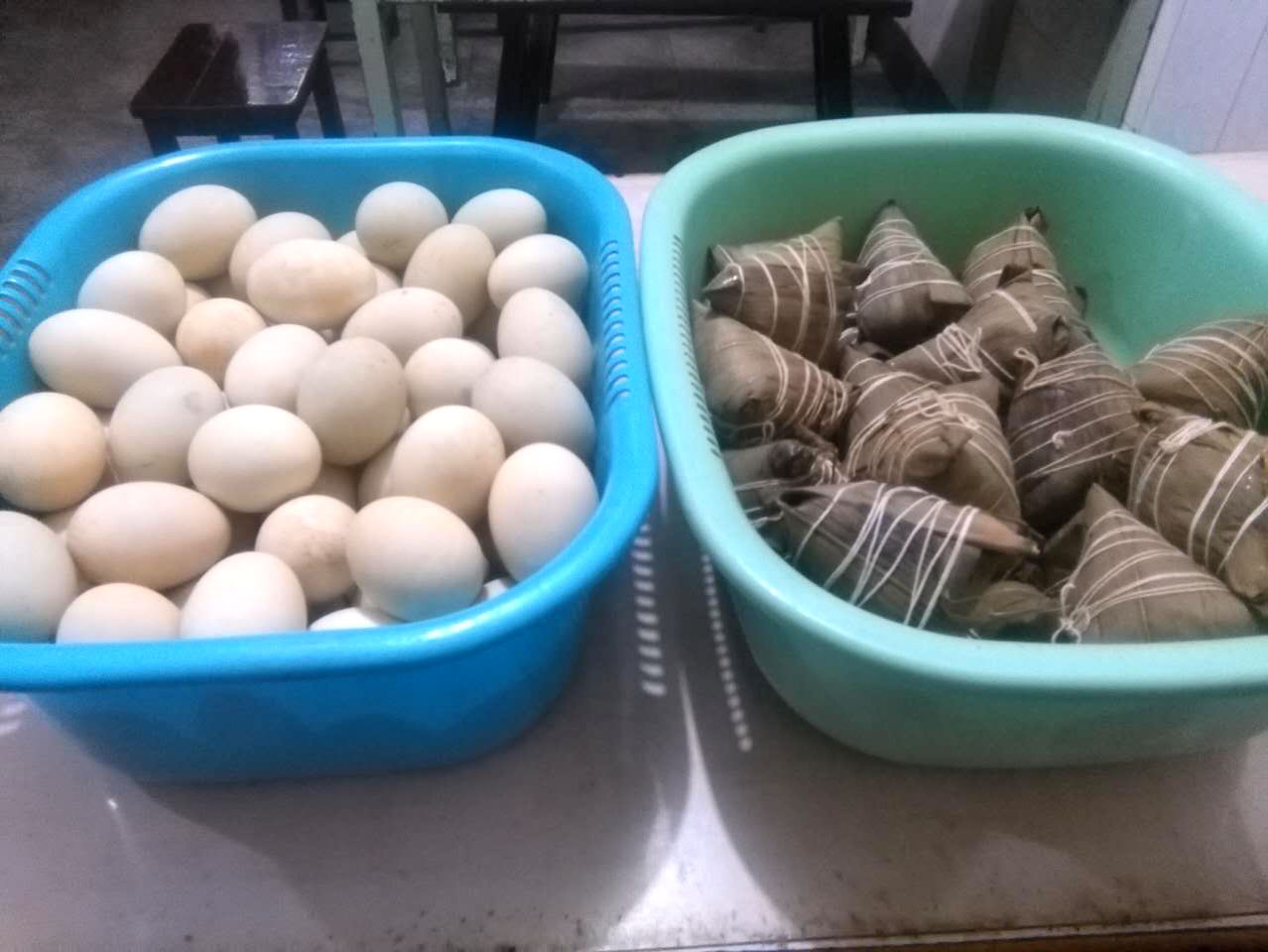 咸鴨蛋、肉粽、蛋黃粽:每天都要包,放爐子燒,在端午前后供應,很好吃。每天都有人打包幾個咸鴨蛋或者粽子拿回家,送人