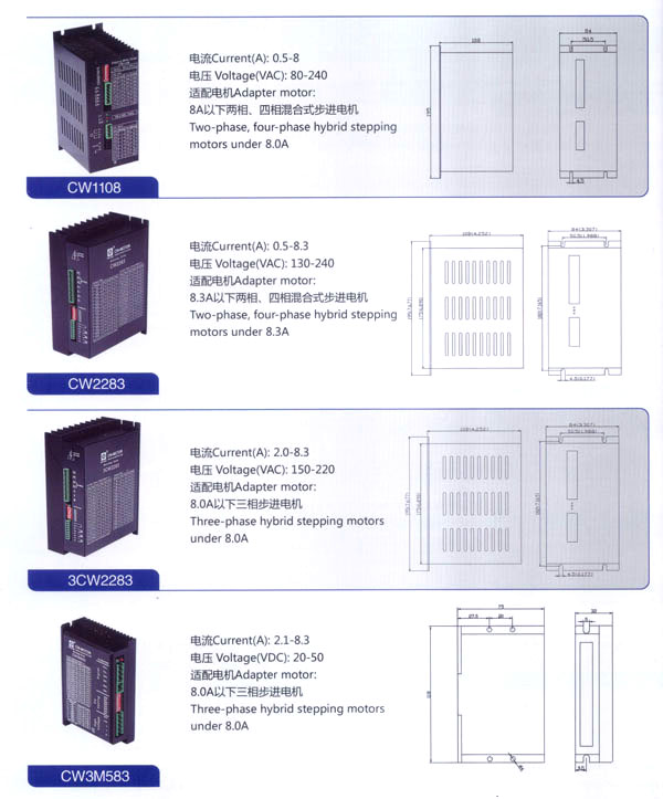 常州創(chuàng)偉電機電器有限公司成立于1995年,是一家專業(yè)從事步進電機及驅動控制生產、研發(fā)的企業(yè),F(xiàn)已擁有一批富有經驗的生產和開發(fā)隊伍。企業(yè)在多年的發(fā)展過程中,為全國各地各行業(yè)提供了大量質優(yōu)價廉的步進電機及控制產品。應用領域涉及機器人、音樂噴泉、數(shù)控機床設備、工業(yè)電子自動化設備、醫(yī)療器械、廣告器材、舞臺燈光設備、印刷設備、紡織機械、計算機外部應用設備等等。 公司產品先后通過ISO9001質量管理體系認證,RoHS認證,CE認證。公司現(xiàn)擁有全自動繞線機、調壓式充磁機、萬能外圓磨床、數(shù)控機床等設備50余臺,固定資產3000萬元,員工總數(shù)200余人,其中技術人員25人。年生產各類電機100萬臺。依靠齊全的檢測設備、完善的檢測手段、嚴格的質量標準,我們一直致力于提高產品的質量和性能。對于每一個客戶我們都提供自始自終的技術服務和產品售后服務。 我公司的主要產品有20BH系列、28BH系列、35BH系列、39BH系列、42BH系列、42BHH系列、57BH圓形系列、57BHH方形系列、60BHH方形系列、86BH圓形系列、86BHH方形系列,以及110BHH系列的四相(二相)混合式步進電。CW60BL、CW63BL、CW70BL、CW92BL系列無刷電機也相繼上市。另外步進電機驅動器CW215、CW230、CW5045、CW8060、CW6060AC、CW1108以及全新數(shù)字式驅動器CWD230、CWD556、CWD860H、CW2M2208、CW3M2208和閉環(huán)電機驅動器CWDS556,CWDS660,CWDS860H,CWDS880L,CWDS1108,CWDS2206等系列也暢銷全球。另外本公司也可對外承接各種步進電機及相關工控系統(tǒng)的應用系統(tǒng)工程。 熱忱歡迎國內外客商前來洽談及合作。