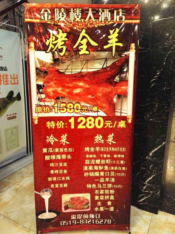 常州市新北區(qū)奔牛金陵樓飯店經營多年餐飲,特色菜,青城仔鵝,特色烤全羊,咸豬頭,香飄牛頭,張市橋老豆腐,香烤牛肉干。