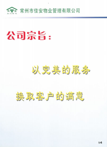 佳安物業(yè)管理有限公司位于常州市新北區(qū)薛家鎮(zhèn),2005年由薛家鎮(zhèn)黨委政府注冊成立,注冊資金50萬元,屬于三級資質(zhì)企業(yè)。成立之初,佳安物業(yè)作為政屬事業(yè)單位,主要負責管理薛家鎮(zhèn)順園新村安置小區(qū)。隨著薛家鎮(zhèn)經(jīng)濟和人口的發(fā)展,為主動適應(yīng)經(jīng)濟發(fā)展新常態(tài),全面深化物業(yè)綜合改革,打造具有薛家特色的物業(yè)公司,佳安物業(yè)由政府下屬的事業(yè)單位正式轉(zhuǎn)變?yōu)楠毩⑦\營的企業(yè),并增資到1000萬元。 2017年6月,公司通過審核被評為“AAA”級信用企業(yè),同月,公司實施ISO9001質(zhì)量管理體系標準,并于8月通過質(zhì)量體系認證審核。2018年8月,公司通過了ISO14001環(huán)境管理體系、ohsas18001職業(yè)健康安全管理體系的認證審核。 目前,公司主要承接小區(qū)物業(yè)服務(wù)及廠區(qū)外派保安服務(wù)、保潔服務(wù)等,F(xiàn)公司為薛家鎮(zhèn)順園一村至順園九村安置小區(qū)及奧林匹克花園、怡景名園2處商業(yè)小區(qū)提供物業(yè)服務(wù);為江南農(nóng)村商業(yè)銀行新北區(qū)所有支行、中車鐵馬、投資服務(wù)中心、華夏藝博園、薛家幼兒園、薛家小學(xué)及薛家中學(xué)等單位提供外派保安服務(wù);為薛家鎮(zhèn)中心廣場及松林別墅提供保安服務(wù);為華夏藝博園及投資服務(wù)中心提供保潔服務(wù)等。 在這十余年中,佳安物業(yè)與時俱進,銳意進取,為地方建設(shè)發(fā)展注入動力,為居民和企業(yè)安全保駕護航,尤其是在實踐中,我們積極探索,正逐步摸索出一條適合薛家城鄉(xiāng)一體化建設(shè)的社區(qū)物業(yè)管理的新路。希望通過今天的分享,和大家一起探討我們在“管辦分離”等方面的實踐經(jīng)驗,并在此基礎(chǔ)上為薛家的可持續(xù)發(fā)展提供可借鑒、推廣的新型物業(yè)管理之路。