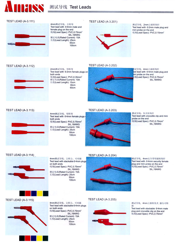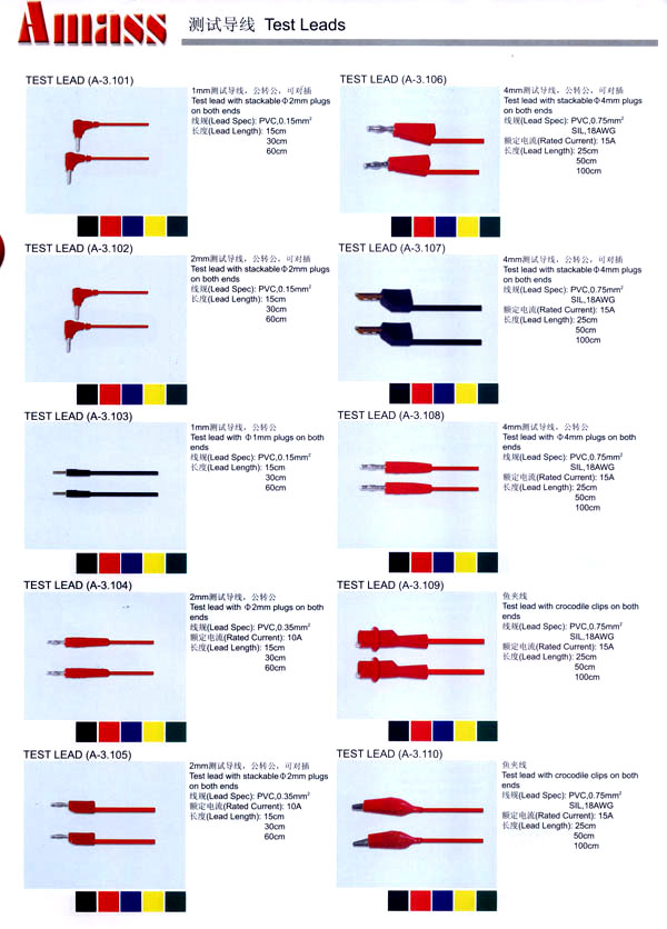 本公司專業(yè)生產(chǎn)各類香蕉插頭,香蕉插座,接線柱,電瓶夾,鱷魚夾,測試導(dǎo)線,測試筆等。產(chǎn)品分2mm/2.5mm/3mm/3.5mm/4mm五大系列,百余種款式, 各種香蕉插廣泛用于儀器、儀表、電力測試、教學(xué)、玩具,視聽設(shè)備、醫(yī)療儀器,保健產(chǎn)品等領(lǐng)域。公司技術(shù)力量雄厚,生產(chǎn)工藝先進,產(chǎn)品遠銷港、臺、歐美,并與飛利浦等國際品牌配套。公司本著精益求精的理念,歡迎新老客戶光臨。