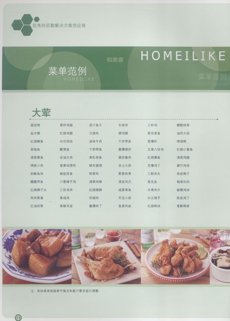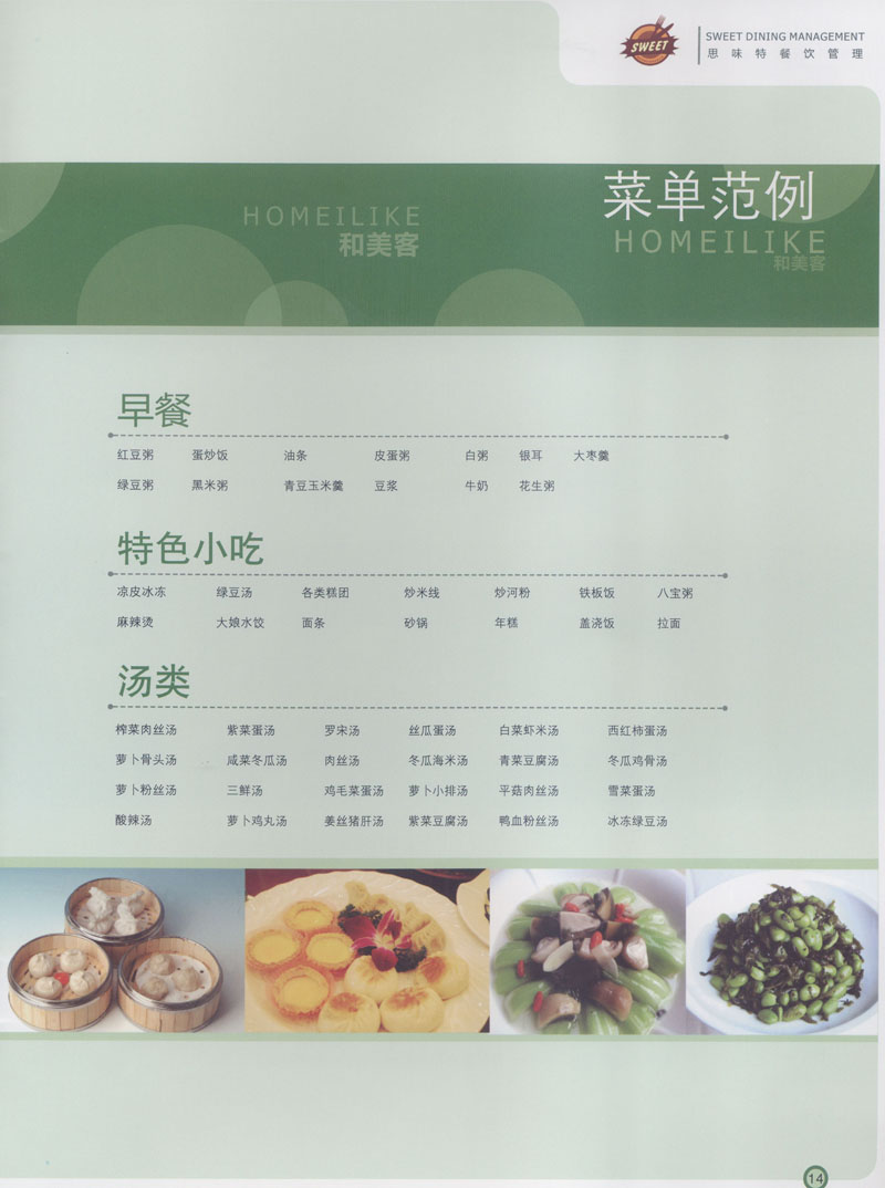 常州市思味特餐飲有限公司是一家專(zhuān)業(yè)從事企事業(yè)后勤服務(wù)的有限責(zé)任公司,公司從承包食堂起步,逐漸發(fā)展為經(jīng)營(yíng)團(tuán)膳承包、營(yíng)養(yǎng)送餐、生活區(qū)管理、連鎖餐廳的綜合型企業(yè)。2008年公司斥資100萬(wàn)元,在常州興建了可以同時(shí)提供3000餐膳食的中央廚房,重點(diǎn)打造“和美客”后勤服務(wù)品牌,全力為企事業(yè)單位解決后勤后顧之憂。 到目前為止,我們合作成功的企事業(yè)單位超過(guò)50多家,服務(wù)人數(shù)突破15萬(wàn),合作單位包括國(guó)家機(jī)關(guān)、國(guó)有企業(yè)、三資企業(yè)、民營(yíng)企業(yè)、學(xué)校、醫(yī)院等,其中不乏國(guó)際知名品牌公司。 和美客愿為更多的國(guó)內(nèi)外企事業(yè)單位及機(jī)關(guān)團(tuán)體分憂解難,從廚房設(shè)計(jì)、菜品配送、團(tuán)膳承包、到生活區(qū)管理等提供全方位的服務(wù)。
