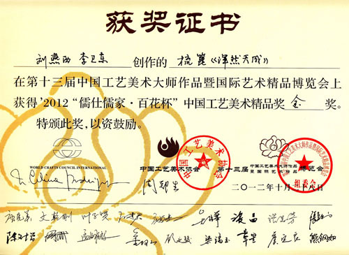 公司榮譽(yù)介紹: “2009年常州市旅游商品創(chuàng)新設(shè)計(jì)大賽”,“覽盡千荷”綠檀雕刻梳榮獲三等獎(jiǎng); “2011年常州市旅游商品創(chuàng)新設(shè)計(jì)大賽”,“彩印工藝梳-我們的年代(80)”榮獲二等獎(jiǎng)。 “2011年中國(guó)包裝創(chuàng)意設(shè)計(jì)大賽“,虞美人彩印梳篦系列包裝獲得一等獎(jiǎng); “2011年中國(guó)包裝創(chuàng)意設(shè)計(jì)大賽”,虞美人筷子系列包裝獲得三等獎(jiǎng); “2011創(chuàng)意中國(guó).第五屆設(shè)計(jì)藝術(shù)大獎(jiǎng)賽”,虞美人系列包裝獲得三等獎(jiǎng); “2011首屆中國(guó)(無(wú)錫)國(guó)際文化藝術(shù)博覽會(huì)”,漆藝對(duì)梳《喜玫瑰》獲得“藝博杯“銅獎(jiǎng)。 “第十三屆中國(guó)工藝美術(shù)大師作品暨國(guó)際藝術(shù)精品博覽會(huì)”, 漆藝梳《報(bào)喜鳥》榮獲2012“儒士儒家•百花杯”中國(guó)工藝美術(shù)精品獎(jiǎng)優(yōu)秀獎(jiǎng) “第十三屆中國(guó)工藝美術(shù)大師作品暨國(guó)際藝術(shù)精品博覽會(huì)”, 虞美人《渾然天成》榮獲2012“儒士儒家•百花杯”中國(guó)工藝美術(shù)精品獎(jiǎng)金獎(jiǎng) “2012江蘇省工藝美術(shù)精品大獎(jiǎng)賽”,虞美人《S型梳》喜獲“藝博杯”銀獎(jiǎng) “第十四屆中國(guó)工藝美術(shù)大師作品暨國(guó)際藝術(shù)精品博覽會(huì)”, 虞美人工藝梳《新型十二星座梳》榮獲2013“國(guó)信•百花杯”中國(guó)工藝美術(shù)精品獎(jiǎng)優(yōu)秀獎(jiǎng) “2013【藝博杯】江蘇省工藝美術(shù)精品大獎(jiǎng)賽”,虞美人《萬(wàn)事如意系列》喜獲“藝博杯”銀獎(jiǎng) “2013江蘇省工藝美術(shù)新人新作成果展作品大獎(jiǎng)賽”,虞美人《壺(福)的藝術(shù)》喜獲“藝博杯”入圍獎(jiǎng) 2013年度江蘇省“蘇商領(lǐng)袖峰會(huì)”,常州市卓尚飾品有限公司榮獲最具成長(zhǎng)性企業(yè)獎(jiǎng) 常州市卓尚飾品(虞美人)有限公司總經(jīng)理李衛(wèi)東榮獲“常州創(chuàng)意產(chǎn)業(yè)協(xié)會(huì)2013年底慈善獎(jiǎng)榮譽(yù)” 常州市卓尚飾品有限公司榮獲薛家鎮(zhèn)人民政府2013年度“創(chuàng)新創(chuàng)優(yōu)”獎(jiǎng) 常州市卓尚飾品有限公司榮獲薛家鎮(zhèn)人民政府2013年度“銷售業(yè)績(jī)”獎(jiǎng) 2014中國(guó)(深圳)國(guó)際文化產(chǎn)業(yè)博覽交易會(huì),劉燕西、李衛(wèi)東、段筆耕<十二星座系列>獲得“中國(guó)工藝美術(shù)文化創(chuàng)意獎(jiǎng)”銀獎(jiǎng) 2014中國(guó)(深圳)國(guó)際文化產(chǎn)業(yè)博覽交易會(huì),徐德鴻、李衛(wèi)東、段筆耕《漆彩人生系列》獲得“中國(guó)工藝美術(shù)文化創(chuàng)意獎(jiǎng)”銅獎(jiǎng) 文化創(chuàng)意大獎(jiǎng)賽“紫金獎(jiǎng)” ,有余(魚)系列梳篦產(chǎn)品獲得了優(yōu)秀獎(jiǎng) 2014吟飛杯首屆常州文化創(chuàng)意和設(shè)計(jì)大賽,虞美人有余(魚)系列梳篦產(chǎn)品榮獲優(yōu)秀設(shè)計(jì)獎(jiǎng) 2014吟飛杯首屆常州文化創(chuàng)意和設(shè)計(jì)大賽,虞美人“云,月”系列梳篦產(chǎn)品榮獲優(yōu)秀設(shè)計(jì)獎(jiǎng) 2014藝博杯江蘇省工藝美術(shù)精品大獎(jiǎng)賽,虞美人《梳篦:酒醉的探戈》喜獲銀獎(jiǎng) 2014“中國(guó)原創(chuàng)•百花杯”中國(guó)工藝美術(shù)精品大獎(jiǎng)賽,虞美人《梳篦-江南風(fēng)韻系列》喜獲銀獎(jiǎng) 常州市卓尚飾品有限公司獲“2014年常州市電子商務(wù)協(xié)會(huì)2014年度優(yōu)秀會(huì)員單位” 2014“虞美人”成為常州市知名商標(biāo)。