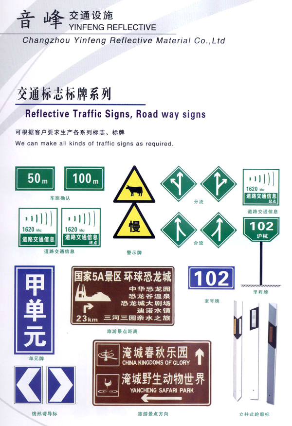 音峰集團是一個多種經(jīng)營的綜合性高科技股份公司,從事反光材料、交通安全設施、絲網(wǎng)印刷、揚聲器、紡織等產(chǎn)品的研制開發(fā)、生產(chǎn)銷售。公司自創(chuàng)立以來,堅持走科技發(fā)展的道路,以滿足客戶需求為公司宗旨,取得了令人矚目的經(jīng)濟效益和社會效益,使公司規(guī)模不斷擴大。 音峰反光材料有限公司是音峰集團下的一個新銳的子公司,主要從事系列反光材料及發(fā)光膜的研制和開發(fā)。公司擁有國內(nèi)最先進的生活殘設備,最專業(yè)的研制、開發(fā)人員,公司還投入了大量的資金,年產(chǎn)值達1.5億。 公司主生產(chǎn):廣告級反光膜、工程級反光膜、車牌級反光膜、高強級反光膜、廣告級反光雙色條、發(fā)光膜、噴繪反光膜、晶彩格、電信電力反光膜,鍍鋁膜等等..........根據(jù)國家指令法規(guī):反光材料的領域,如公路標志、標牌、標線、礦山、鐵路等......... 反光膜廣泛應用于各種廣告標志牌,公路鐵路的導向牌、指示牌、地名牌、車牌,道路交通標志,物業(yè)小區(qū)標志,臨時施工標志,廣告宣傳、安全防護、高等級公路的各種警示標語,標識牌等。 公司堅持以生產(chǎn)力標準衡量企業(yè)效益和員工業(yè)績,堅持“以人為本,提倡知人、容人、用人、培養(yǎng)人,使企業(yè)具有極強的凝聚力,在激勵的市場競爭中保持旺盛的生命力!笨萍急WC品質,服務完善產(chǎn)品“是我們永遠不變的信念。 隨著世界的發(fā)展,企業(yè)經(jīng)營進入了全球化時代,本著這一共識,企業(yè)憑借自身的技術優(yōu)勢,積極參加國際間合作與競爭,努力拓展國內(nèi)與國際市場,公司愿與國內(nèi)外各界朋友在更廣泛的領域攜手合作,共同發(fā)展,共創(chuàng)繁榮。