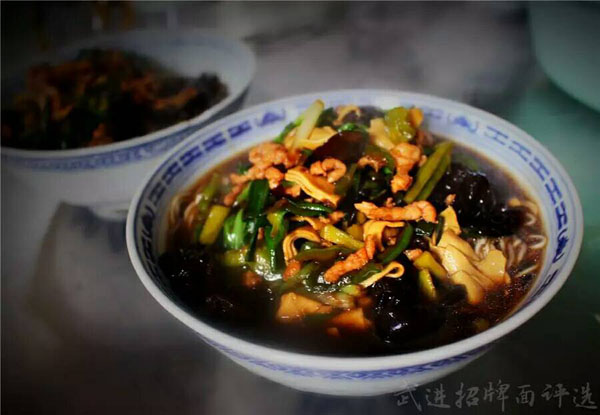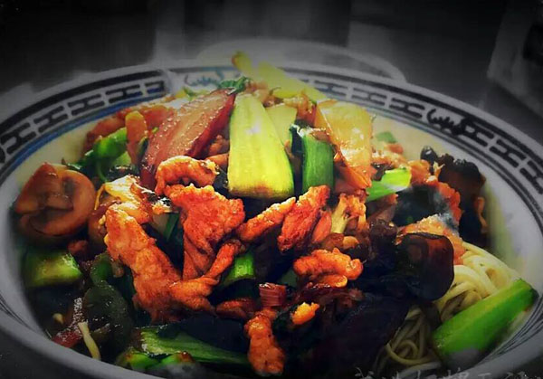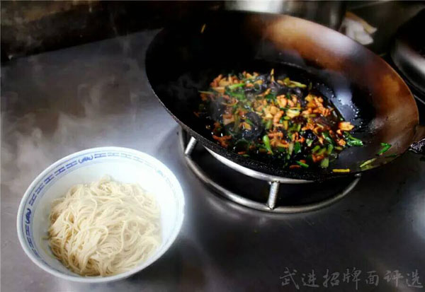 武進(jìn)區(qū)青城面館經(jīng)營面積280平方米左右,主要特色是現(xiàn)炒肉絲,素菜蓋澆面,面館創(chuàng)始人今年63歲的王蘭珍,她對美食有著高于常人的悟性。她開過饅頭店,開過小飯館,承包過食堂,燒菜、取料樣樣在行,吃過的人常常贊不絕口。 20世紀(jì)初,在跟德興面館的老師傅學(xué)了做面手藝后,王蘭珍萌生了開一家面館的想法,除了可以養(yǎng)家糊口,最重要的是想讓更多人嘗嘗自己的手藝。于是,她在自己的住處擺起了幾張桌椅,面館就算正式營業(yè)了。因?yàn)榧易∏喑菢,王蘭珍干脆取名“青城面館”。 “從早上5點(diǎn)多開始營業(yè),到下午1點(diǎn)多打烊,一天至少要賣掉300多碗面,用掉近160斤面粉!睘楹吻喑敲骛^的面條如此受歡迎,兒媳婦陸偉紅說秘訣在于湯頭和澆頭。湯頭分白湯和紅湯,白湯是由10斤豬骨頭熬制而成,湯色清澈而味道濃郁;紅湯以骨頭湯作底湯,加入茴香、甘草、草果等20多種中草藥,以及糖、醬油等調(diào)味品,鮮而不腥,散發(fā)出陣陣香味。 和一般面館事先燒制好澆頭,放在盆里供客人選擇不同,青城面館的澆頭都是一份份現(xiàn)炒的,特別講究食材的新鮮。就拿暢銷的肉絲蔬菜紅湯面來說,要先起猛火,把肉絲、木耳、蘑菇、青菜等食材放一起煸炒至香,然后澆在撈起的面條上。一碗面出來,現(xiàn)炒的澆頭與面條融合,味道香郁至極。 遙觀人的早晨,醒得有些早。對很多遙觀人來說,美好的一天是從青城面館開始的。那一碗碗現(xiàn)炒的蓋澆面,筋道爽滑、醬香味濃,溫存著他們的胃與記憶,帶來刻進(jìn)骨子里的家鄉(xiāng)味道。