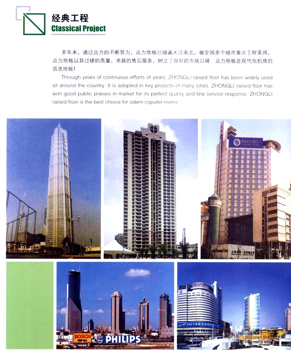 公司生產(chǎn)防靜電鋼質(zhì)、木質(zhì)機(jī)房地板和強(qiáng)化復(fù)合地板及各種電腦操作臺(tái)系列產(chǎn)品。該產(chǎn)品廣泛應(yīng)用于電子機(jī)房、通訊機(jī)房、各類(lèi)實(shí)驗(yàn)室和管線鋪設(shè)集中的防靜電場(chǎng)所以及家庭、大型商場(chǎng)的裝飾。公司技術(shù)力量雄厚、管理科學(xué),已具有設(shè)計(jì)、開(kāi)發(fā)、市場(chǎng)營(yíng)銷(xiāo)及售后服務(wù)的專(zhuān)業(yè)人才隊(duì)伍。