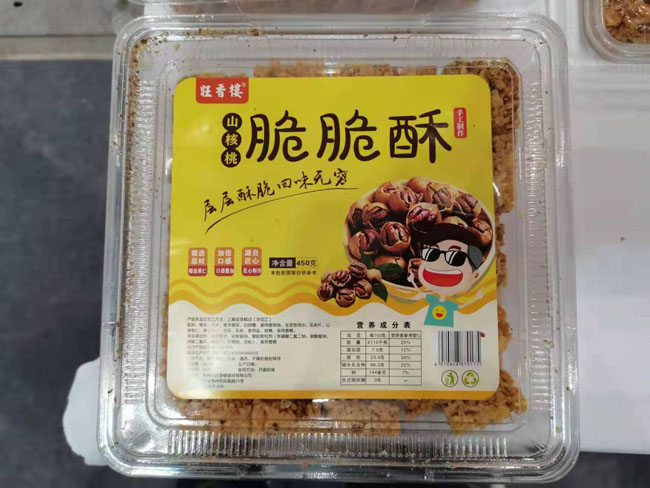 旺香樓食品公司的主要品牌產(chǎn)品漢堡酥,經(jīng)過專家精心調(diào)配,用上好的豬油,拌以適量蒸好的面粉,化油時加適量花椒,桂皮,油化后剔出已炸酥的花椒,桂皮,再和面成餡;馃び孟阌秃兔,包制好入爐,用文火烘烤而成。特點是漢堡金黃,層次清晰,脆而不碎,油而不膩,口味獨特,營養(yǎng)豐富。